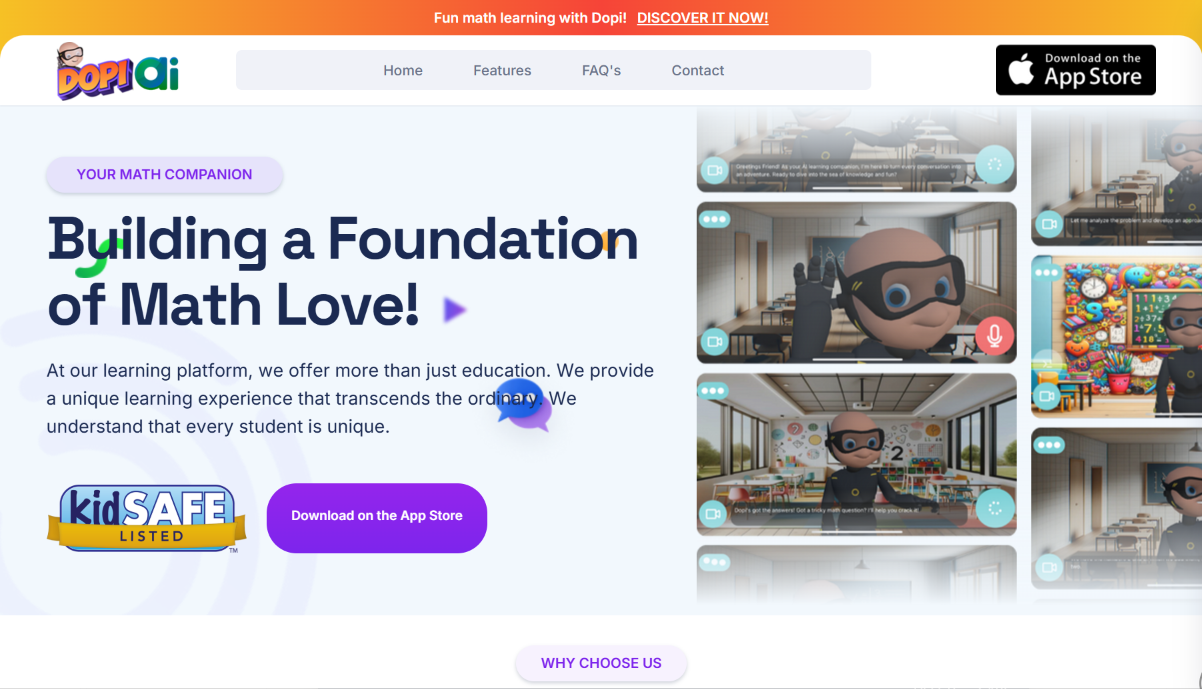 Introducing Dopi, the perfect AI math assistant for kids, designed to make learning math easier and more interactive. Dopi’s advanced AI math solver can instantly solve math problems and provide detailed explanations, acting as a personal AI math teacher.