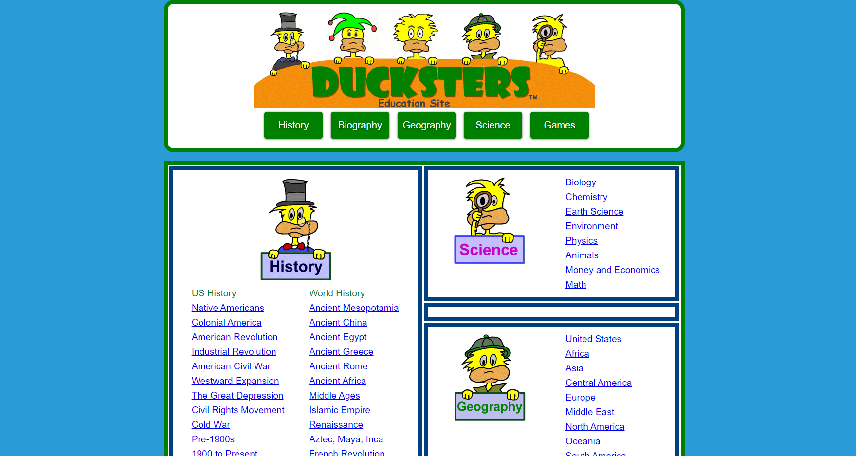 Educational website covering subjects such as history, science, biography, geography, and math. Easy to read articles and activities on a variety of subjects helps readers of all education levels to learn, review, and prepare for the classroom.
